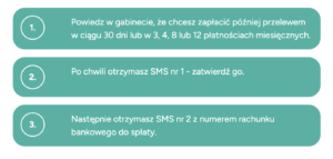 Proces realizowany jest w pełni zdalnie – do potwierdzenia transakcji wystarczy smartfon oraz dowód osobisty. Dzięki temu możesz skorzystać z potrzebnej usługi od razu, a płatność rozłożyć na 3, 4, 8 lub 12 równych rat miesięcznych.